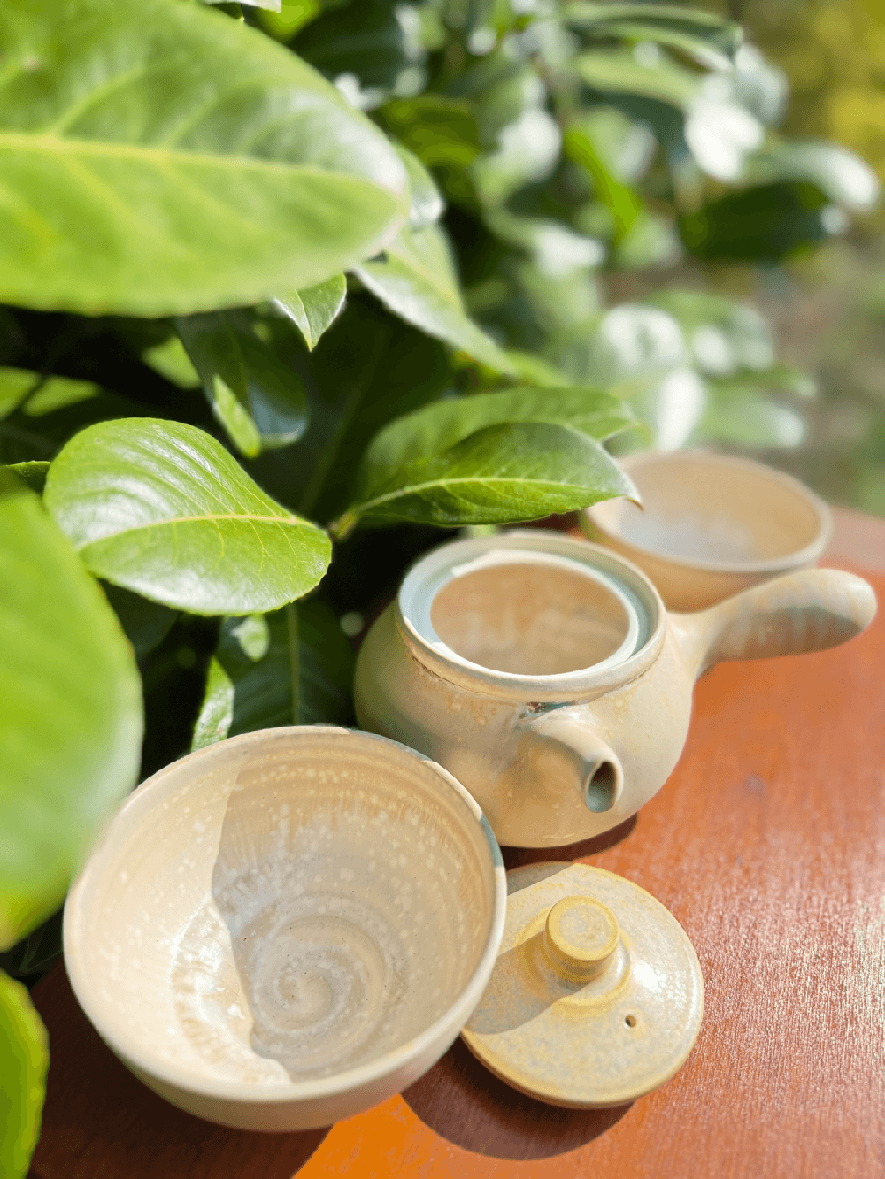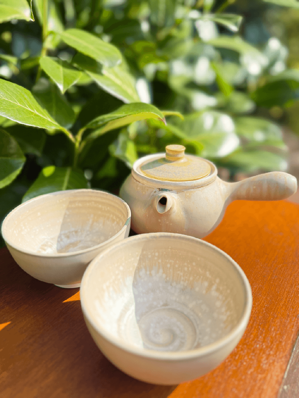 Kyusu konvička se dvěma miskami. Objem 300 ml.